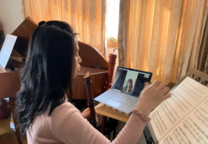 4月からオンラインレッスン始めております。2重奏など音を重ねることはできませんが、音はしっかり聞こえていますので問題はなくレッスンできております。